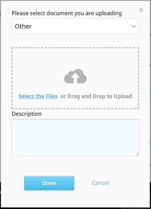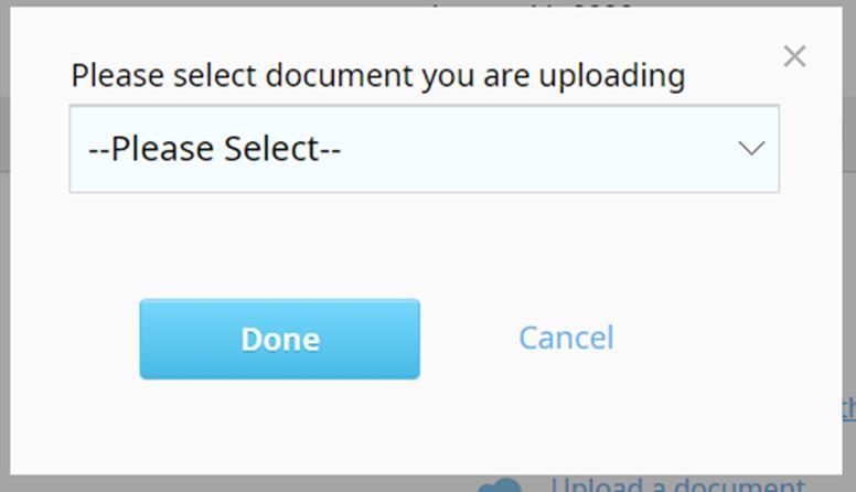 Once you select the link: “Upload a Document” you will be able to select what type of document you are uploading from the drop-down menu, which may be different for all candidates: